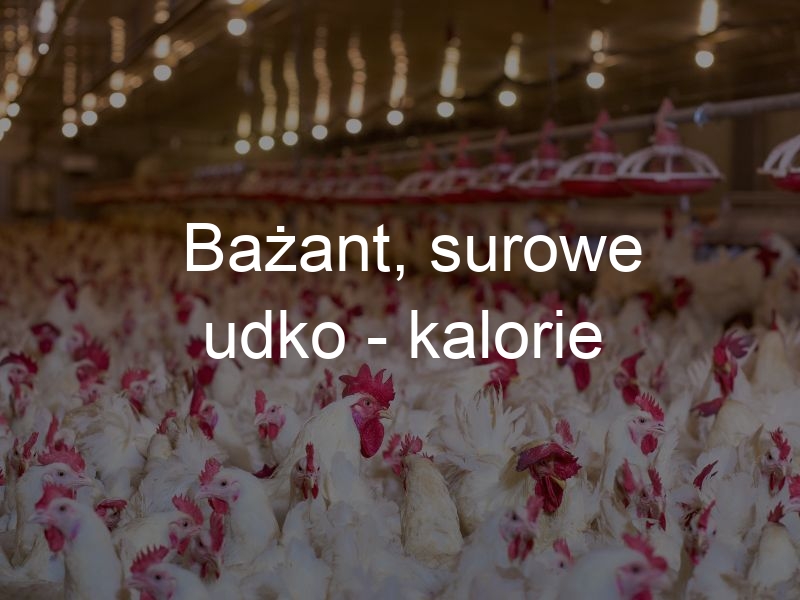 Bażant, surowe udko ma w sobie 73.4 g wody, 22.6 g białka, 0 g weglowodanów i 4.4 g tłuszczy.